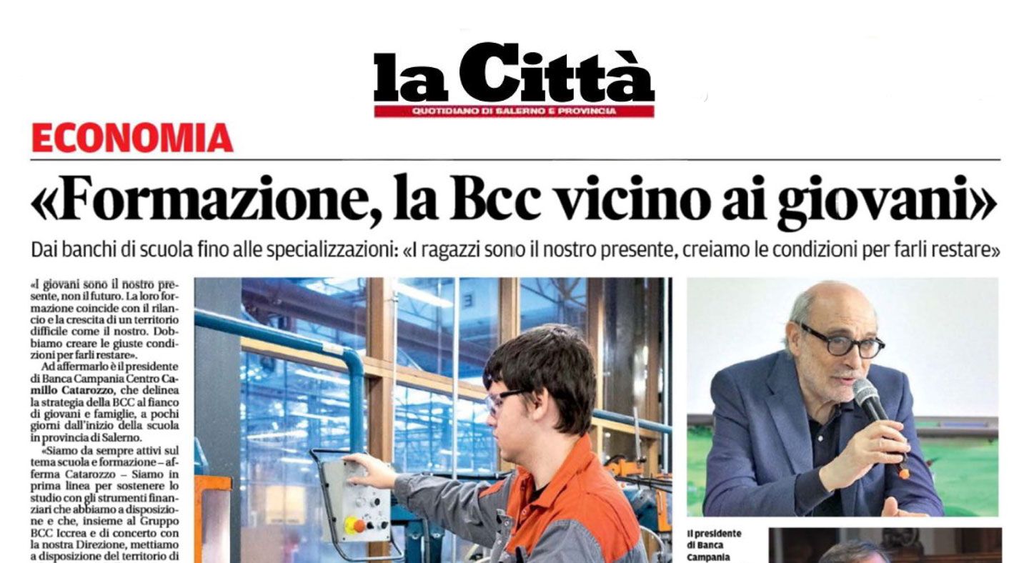 Sul quotidiano La Città di Salerno un approfondimento sulle iniziative attivate da Banca Campania Centro per sostenere i giovanie la loro formazione. Tra queste, si parla anche dell’ITS Te.La., di cui Banca Campania Centro è socio fondatore insieme a Confindustria Salerno, Camera di Commercio di Salerno, Confagricoltura Salerno, ANICAV Associazione, Provincia di Salerno, Università degli Studi di Salerno, Istituti Superiori, Enti di formazione e primarie aziende di riferimento dell’intera filiera agroalimentare, dai prodotti agricoli, alla trasformazione, fino al packaging.